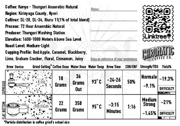 This small lot of SL28 and SL34 was grown at high elevations (1600–1800m), then processed at the Thunguri Washing Station with a 72-hour anaerobic fermentation. Sealed, slow, and intentional. That extra time in the tank doesn’t just sound cool, it does something. It unlocks wild, vivid layers of flavor you just can’t get from a standard process.